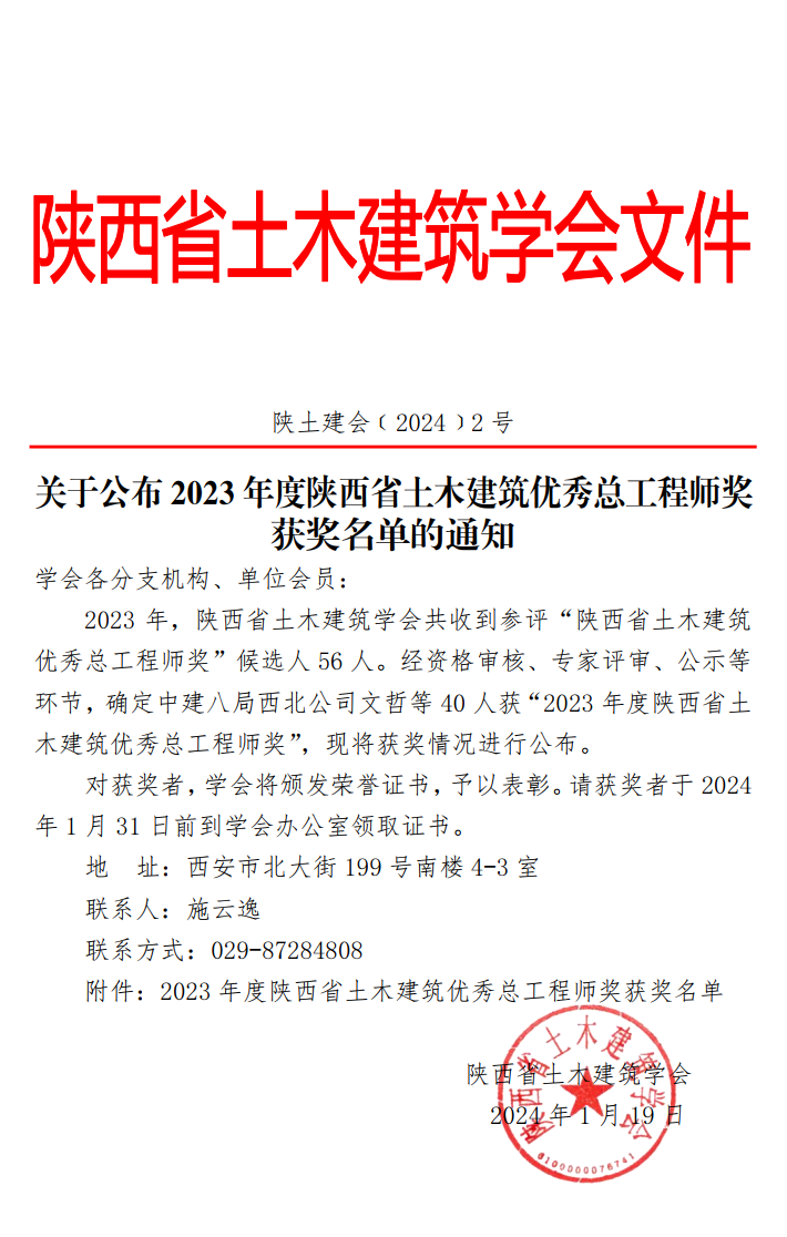 上一篇:关于公布2023年度陕西省土木建筑青年科技奖获奖名单的通知